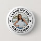 Personalizado "I Love my Hot Girlfriend" (Me encanta mi novia caliente) personalizado diseño de texto y botón de foto para que puedas crear tu propio regalo de "Amo a mi novia". Los colores y las fuentes se pueden editar, simplemente utilice la Herramienta de diseño para un control de diseño completo. Este estilo es perfecto para una manera simple, mínima, más sobria y linda de usar una foto de tu novia para El día de San Valentín, un aniversario, cumpleaños, fecha romántica, o propuesta de compromiso o regalo de ida y vuelta antes de viajar, la escuela o un nuevo trabajo.