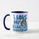 ¡Taza fresca del Coonhound de Bluetick! En el derecho es un dibujo del Coonhound de Bluetick del kawaii, con densamente, azul dos-entonado imprimiendo todos alrededor. El texto lee, "yo ama mi Coonhound de Bluetick." Mercancía linda del Coonhound de Bluetick para los amantes del perro. También tenemos este diseño en un surtido ancho de otros artículos, incluyendo el camisetas.