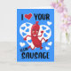 Esta divertida tarjeta del día de San Valentín presenta una salchicha linda con corazones.