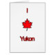 Una variación en el tema del corazón I. La imagen utiliza una hoja de arce canadiense en lugar del símbolo normal del corazón. Este diseño dice "I (hoja de arce canadiense) Yukón. Las letras y el símbolo de la hoja son rojos con un borde negro o un trazo. Esto es un gran regalo para cualquiera que sea un orgulloso canadiense y residente de la Tierra del Sol Medianoche.