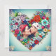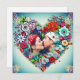 Bonito de fondo verde azulado con rosas rojas y flores coloridas estilo arte folclórico floral estilo corazón floral. Agregue una imagen de usted y su compañero en el área de personalización. Dulce regalo romántico para El día de San Valentín, Navidades, cumpleaños, aniversario o cualquier ocasión romántica.