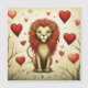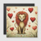 Un pequeño y adorable león y corazones.