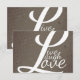 Diseño inspirador de Live Laugh Love. Montaje tipográfico de las palabras "Live, Laugh, Love." sobre un fondo de color gris marrón, con un fondo medio acentuado. Personalizar este gran producto con tu propio texto, monograma, logotipo o mensaje personal! (haga clic en el botón naranja "¡Personalizar!" que aparece arriba)