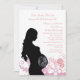Ofrezca el *ultrasound del bebé en este diseño hermoso de la fiesta de bienvenida al bebé. El fondo blanco tiene las flores rosadas y blancas y los remolinos y una silueta de una mujer embarazada con un bebé en su matriz. ¿*Do no tener un ultrasonido del bebé? Utilice este ultrasonido genérico proporcionado.