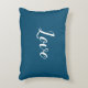 "Amor" en hermosa letra en una cómoda almohada de acento. El color de esta es un bonito azul océano con letra blanca, y también la tenemos en muchos otros colores. Echa un vistazo a las demás con un clic fácil para ver qué toque de color quedaría mejor para agregar este mensaje de amor a la decoración de tu hogar. Este ejemplo está configurado con una funda de algodón lavable, pero también es fácil elegir otras opciones de tela con diferentes precios. Puedes personalizar el texto si lo deseas, como cambiar la L en "Amor" a minúscula, o escribir "Nos amo".