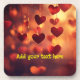 Eleva tu decoración de mesa con este juego de seis posavasos que presentan un diseño romántico de corazones colgantes que brillan suavemente. Perfectos para el Día de San Valentín, bodas o reuniones acogedoras, estos posavasos añaden encanto y calidez a tu hogar. Hazlos verdaderamente únicos personalizando el conjunto de posavasos con tu propio mensaje especial, creando un recuerdo considerado o un regalo personalizado para seres queridos. Duraderos y elegantes, este conjunto combina funcionalidad con elegancia sincera, asegurando que tus superficies estén protegidas de la manera más hermosa.