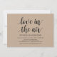 Amor en el aire, tarjeta de invitación a la recepción de boda por fuga de novios. Esta tarjeta de invitación con tema de fuga de novios de kraft rústico es perfecta para la recepción de su boda y la fiesta de celebración después de la boda. Agregue sus datos en fuente / letra negra a juego.