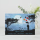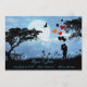 Pareja besándose bajo la luna cerca de globos de colores brillantes.