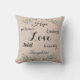 Amor, esperanza, paciencia, risa, diversión. ... ... almohada de vida. Disponible en diferentes tamaños.
