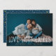 La tarjeta de fotos de Hanukkah, fina y desenfadada, incluye tu foto horizontal o paisajista favorita con "amor, luz, lagos", con letras blancas acentuadas con estrellas de David. Personaliza con tu saludo de Hanukkah, nombres y el año bajo. Las tarjetas se revierten a un patrón de nieve y estrellas en azul oscuro.