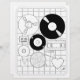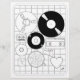 Página de coloreado que representa medios de audio, vídeo y fotos antiguas.
