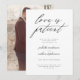 ¡Cuidado! Mantenga a sus invitados al tanto de los detalles de su evento reprogramado o pospuesto con esta tarjeta de aplazamiento minimalista y moderna que presenta una tipografía moderna y simple en blanco y negro. "El amor es paciente" aparece en una fuente de caligrafía elegante y chic. En la parte posterior hay una plantilla de foto para que la reemplace con la suya. Comience a personalizar esta tarjeta haciendo clic en "Personalizar esta plantilla".