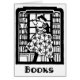 Perfeccione para el aficionado a los libros. El diseño blanco y negro del vintage con un chica en el vestido largo que se sentaba en el top de una escalera que es rodeada por el libro llenó estantes. Debajo de los "LIBROS"