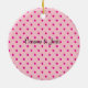 Perfecto para tu primera Navidad juntos o tu décima. Este adorable ornamento tiene un adorable par de peces que se tiran uno al otro. Está en el centro blanco de un círculo con uno rosado, y luego negro con un rosa claro con un punto polka rosado caliente borde exterior de adorno. Dáselo como regalo o compre por usted mismo. Esto será un gran sake para muchos, muchos años por venir. ©JW Ilustraciones