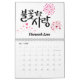 Trae calor y amor a cada mes de 2026 con este hermoso calendario coreano de caligrafía. Cada página captura una temporada especial de amor — desde el suave resplandor de la primavera y la alegre brisa del verano hasta el acogedor abrazo de Navidades. Perfecto para la decoración de casa o de oficina, este calendario celebra el afecto, la positividad y los momentos más sentidos durante todo el año. Tanto si eres aficionado al arte coreano como si buscas un regalo significativo, este calendario de "Amor todo el año" llenará tu espacio con encanto e inspiración todos los días del año.