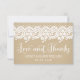 Las tarjetas de nota de agradecimiento de boda plano incluyen "Amor y Gracias" en escritura, un encantador diseño de borde ilustrado de encaje floral y punteado blanco, un monograma personalizado que puede ser personalizado, y un fondo con un estilo rústico de papel marrón kraft texturizado.