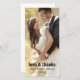 Envíe una elegante tarjeta de foto de boda a la familia y amigos. Añade tu mejor foto boda y la mejor redacción personalizado para dar un agradecimiento especial. El destinatario realmente apreciará su tarjeta mientras recuerda su día de bodas. Haz recuerdos por fin con una tarjeta de fotos de agradecimiento especialmente diseñada por ti. Un regalo ideal para los huéspedes y amigos bodas. Tanto si es elegante, moderno, vintage o artístico, simplemente agrega tu mejor foto y texto para crear esa tarjeta perfecta hoy!