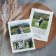 Las tarjetas de agradecimiento de boda verticales planas presentan un texto moderno y minimalista en negro "Amor y Agradecimiento" con un acento de corazón adorable, el monograma de los nombres de la pareja de novios, junto con un simple collage de 3 fotos en la parte frontal. En la parte posterior de la tarjeta se incluye espacio para una foto adicional y un mensaje de agradecimiento personalizado. Nota, el esquema de color en blanco y negro se puede modificar.