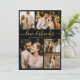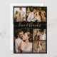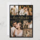 Tarjetas de agradecimiento de boda con collage de fotos en oro y negro con letra Elegant Script. Plantilla moderna y minimalista de tarjeta de agradecimiento de boda que presenta cinco (5) fotos en la parte delantera y una (1) foto en la parte trasera. Con el texto "Amor y gracias" en una hermosa fuente tipográfica de letra manuscrita en oro sobre fondo negro. Personaliza tu nombre, fotos y mensaje de agradecimiento. Si prefieres escribir a mano tu nota, simplemente elimina el texto de muestra para hacer más espacio. Por favor, ponte en contacto conmigo si necesitas ayuda con este diseño.