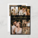 Tarjetas de agradecimiento de boda elegantes y minimalistas con collage de 5 fotos en oro y negro. Plantilla moderna de tarjeta de agradecimiento de boda con cinco (5) fotos en la parte delantera y una (1) foto en la parte trasera. Con el texto "Amor y gracias" en una fuente de escritura a mano con tipografía en oro sobre fondo negro. Agrega tu nombre, fotos y mensaje de agradecimiento. Si prefieres escribir a mano tu nota, simplemente elimina el texto de muestra para hacer más espacio. Por favor, contáctame si necesitas ayuda con este diseño.