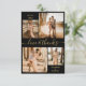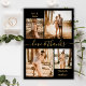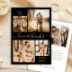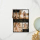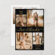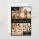Elegante, moderna y minimalista tarjeta de agradecimiento de boda personalizada con collage de fotos escritas a mano en negro y dorado. Plantilla de tarjeta de agradecimiento de boda elegante que presenta cuatro (4) fotos en la parte delantera y una (1) foto en la parte trasera. Con el texto "Amor y gracias" en una tipografía de letra manuscrita cursiva con fuente de cola de milano en color dorado sobre fondo negro. Personaliza tu nombre y mensaje de agradecimiento. Si prefieres escribir tu nota a mano, simplemente elimina el texto de muestra para hacer más espacio.
