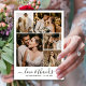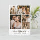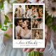Elegante y moderna tarjeta de agradecimiento boda con un diseño minimalista, con 6 (6) disposición de collage de fotos. La frase "Amor y agradecimiento" está bellamente escrita en un tipo de letra con letras de caligrafía a mano de moda, estilo cruz-cruz, en negro clásico sobre un fondo blanco limpio. Personalizar con tus fotos favoritas de bodas, tus nombres y un mensaje de agradecimiento sincero. ¿Prefieres escribir tu propia nota? Simplemente elimine el texto de ejemplo para obtener más espacio. Una manera perfecta para que la novia y el novio expresen su gratitud de manera personal y elegante. Ideal para los estilos bodas modernos, minimalistas o con enfoque tipográfico.