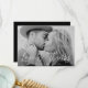 Tarjeta moderna de agradecimiento de boda con tu foto de boda horizontal con "Amor y agradecimiento" mostrado en una superposición simple de escritura blanca. Personaliza la tarjeta de agradecimiento con tu nombre. La tarjeta se revierte a un fondo negro sólido con espacio para fotos y texto adicionales.
