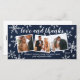 Difunde amor esta temporada navideña con esta tarjeta de fotos navideñas completamente personalizada con una tarjeta de agradecimiento para recién casados. Cuenta con 3 fotos y copos de nieve dibujados a mano y fondo con efecto texturizado azul marino.