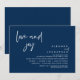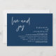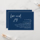Tarjeta de invitación de boda con tema de escritura en azul marino moderno (Amor y Alegría). Es perfecta para su recepción de boda después de una huida romántica / celebración de fiesta después de la boda. Agregue sus detalles en la fuente / letra coincidente.