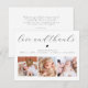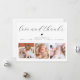 Crea tu propia tarjeta de agradecimiento de collage de fotos de baby shower para agradecer a amigos y familiares por dar la bienvenida a tu pequeño. El diseño elegante y minimalista presenta un collage de tres fotos personalizadas en la parte inferior y tipografía elegante en la parte superior con tu mensaje de "amor y gracias" en una escritura elegante y la información de tu bebé. También hay un pequeño corazón adorable. En la parte trasera, hay un mensaje personalizable con tus nombres. Hazlo único reemplazando el texto y las imágenes haciendo clic en el botón "Personalizar". Esta dulce tarjeta de anuncio de nacimiento y agradecimiento con collage de 3 fotos será un hermoso recuerdo para tu familia y amigos.
