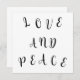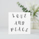 Palabras de letra con guión corto amor y paz en un fondo de color claro.
