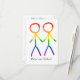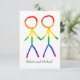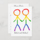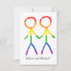 Esta tarjeta RSVP presenta un diseño hermoso y sencillo que se incluye en las invitaciones para bodas. El gráfico representa a dos hombres, en forma de elegantes figuras de palos, tomados de la mano. Las figuras están coloreadas en un hermoso arco iris, simbolizando el amor y la diversidad. Esta tarjeta es una manera maravillosa de darle un toque coherente y significativo a su papelería mientras que ofrece a los invitados una forma clara y elegante de contestar. j