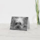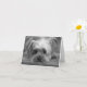 ¡Nada dice lindo como un cachorro de Yorkshire Terrier! Esta divertida tarjeta de felicitación presenta un retrato en blanco y negro de un adorable cachorro de Yorkie descansando en un porche de madera. Ella está lista para ayudarte a enviar saludos a familiares y amigos.