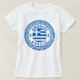 Amorgos, camiseta de mujeres griegas con la bandera nacional de Grecia dentro de un antiguo símbolo de círculo de patrones griego. Disfruta de llevar esta camiseta mientras estás de vacaciones en la hermosa isla de Amorgos o dásela como recuerdo de regalo.
