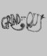 La imagen muestra el texto 'Grind It Out' en una fuente tipo tiza. La tipografía tiene un diseño fluido y rizado.