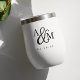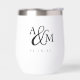Un elegante diseño de monograma adorna estos tumblers de vino térmico, convirtiéndolos en un perfecto favor de boda o en una adición a sus bolsos de bienvenida boda. Personalice el diseño de macros y monogramas con sus iniciales y agregue la fecha de boda debajo.