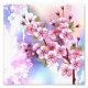 Dibujado artísticamente, rama de rosa, flores de cerezo sobre fondo pintoresco, texturizado, pintado con pintura blanca, rosa y azul. Pink Sakura