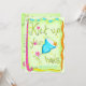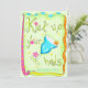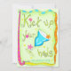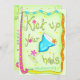 "Métete los tacones" y disfruta el día. Esta invitación es una manera deliciosa de llegar a un fiesta u otro evento. El arte dibujado a mano embellece esta colección con una bebida azul tropical con acentos florales y las palabras "Kick Up Your Heels". Un borde brillante de varios colores completa el diseño personalizable completo para añadir mensajes impresos y la información de su fiesta!