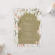 A romantic wedding invitation in an elegant olive hue • The allure of earthy tones: Dazzle your guests with a wedding invitation that combines the warmth of a luxurious olive color with the delicate, light-colored blooms of aquamarine tulips. • A symbol of deep love: The modern bow design embraces an artistic depiction of lovebirds, reflecting the beginning of a timeless love story in a sophisticated and unconventional style. • Perfect for nature-loving couples: The ideal choice for bohemian, rustic, or outdoor weddings. • Let this artistic invitation be the start of your everlasting celebration.