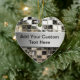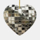 ¡El diseño bling abstracto del mosaico de la plata de la forma hermosa del corazón con una mirada brillante del mirrorball del fiesta de disco en ambos lados hace un ornamento del día de fiesta festivo y grande del navidad, de Jánuca, o del Año Nuevo, un favor o un regalo! ¡Grande para los niños, las adolescencias, los hombres y las mujeres de todas las edades! Ahora usted puede añadir fácilmente cualquier texto de encargo sobre la placa de plata de la mirada para personalizar nombres, fechas, la ocasión especial, el etc.