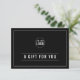 Este certificado de regalo tiene un borde blanco y líneas con un color de fondo editable (haga clic en "editar" y cambie el color de fondo) en el frente con las palabras "Un regalo para ti" en negrita y donde también puede añadir tu logotipo. Personalízalo reemplazando el texto del marcador de posición y la imagen del marcador de posición con su propio logotipo. Para obtener más opciones como cambiar el tipo de letra, su tamaño y espaciado entre letras haga clic en el botón "Personalizar". *Tenga en cuenta que la marca de agua Zazzle que aparece en la vista previa del zoom NO aparecerá en el producto impreso final. © Rosewood y Citrus