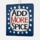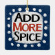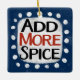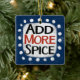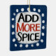 Una tipográfica chunky y tipográfica que dice "Añadir más especias". Tiene texto en negro y rojo sobre un rectángulo blanco con puntos blancos divertidos y juguetones rodeándolo, todo sobre un fondo azul.
