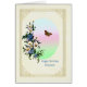 Una hermosa tarjeta de cumpleaños floral para usted al personalizar. Añade cualquier nombre para hacer una preciosa tarjeta personal. Un bonito ramo de flores azules y blancas con una mariposa marrón en vuelo. El cuadro tiene un delicado marco dorado.