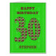 Añade un nombre para hacer una tarjeta de cumpleaños número 30 para un hincha de fútbol. Los números están llenos de balones de fútbol, mientras que el fondo es un campo de fútbol.