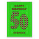 Añade un nombre para hacer una tarjeta de 50 años para un hincha de fútbol. Los números están llenos de balones de fútbol, mientras que el fondo es un campo de fútbol.
