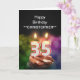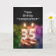 Quemando velas de pastel de 35 años en forma de números encima de un quequito de chocolate. Personalizar con el nombre de la persona de cumpleaños. Adecuado para un hombre o una mujer. Ver toda la gama de tarjetas para edades y relaciones en mi tienda. Todos los derechos de autor de arte Norma Cornes