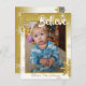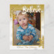 Creer. Bonito dorado desvanecido con copos de nieve dorados con tu foto favorita de tus hijos o tarjeta de Navidades familiares. Simplemente sube el área personalizada.