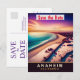 Anaheim save the date invitación de boda, tarjeta postal de viaje. Vista aérea de la playa, en colores vibrantes de la puesta de sol.