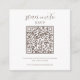 Escanéame al diseño de código QR RSVP. Invite a sus invitados a su sitio web boda a RSVP. Agregue la dirección URL del sitio web del boda mediante la ficha de personalización, el código QR estará enlazado a su sitio web.