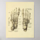 Vistas superiores e inferiores de los huesos del pie y tobillo humano que muestran las articulaciones. Huella de anatomía de reproducción de principios del siglo XX.
